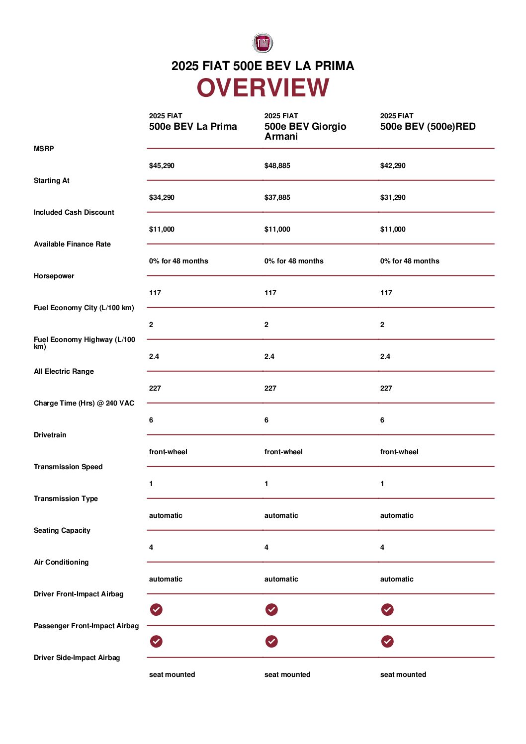 The 2025 FIATĀ® 500e Battery Electric Vehicle (BEV)